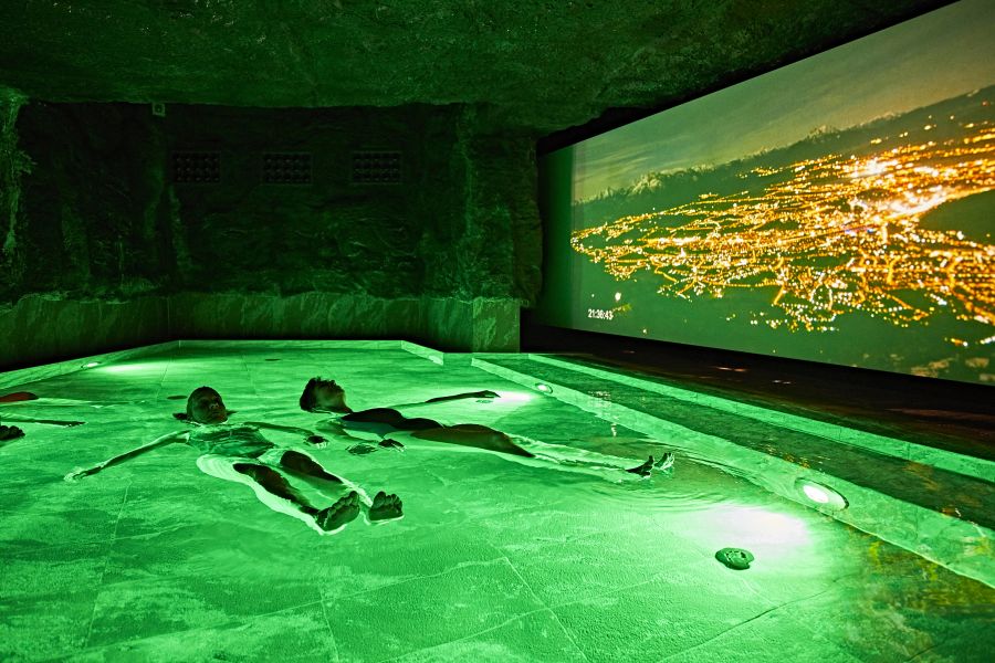 Im Innen- und Außenbereich der Saunalandschaft „Quelle des Feuers“ finden Sie acht verschiedene finnische Saunen, eine holzbefeuerte Erdsauna mit sanft loderndem Holzfeuer, eine Salz-Stollensauna sowie ein Laist-Sole-Dampfbad mit regelmäßigen Salzaufguss-Zeremonien und Mineralsoleschlick-Anwendungen.